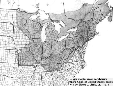 Map showing distribution of "Acer Saccharum" in North America