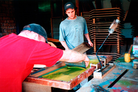 Screen printing the base of the decks direct.