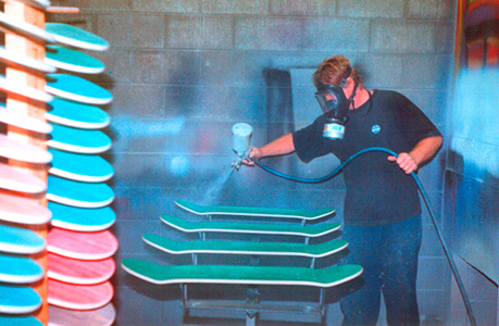 It is at this point, depending on how the graphics are to be applied that the decks are either gloss coated or perhaps a base paint is applied ready for screen printing.